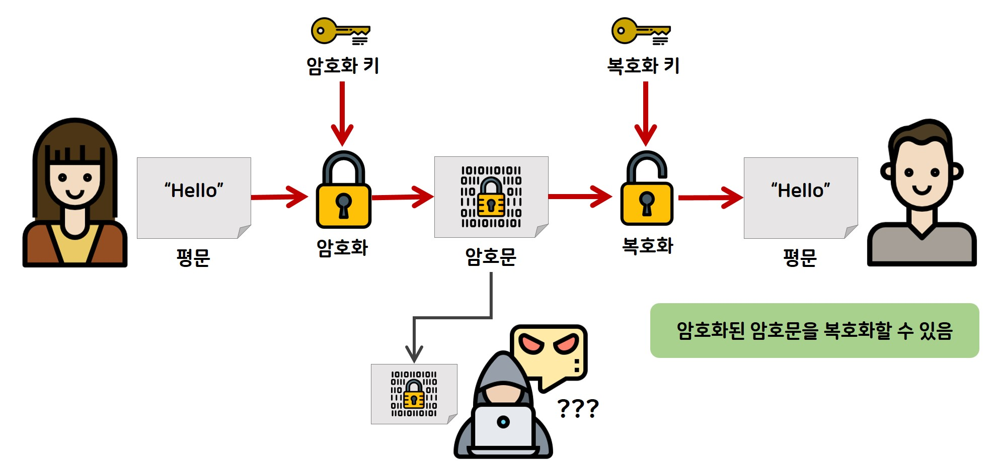 • 비밀키로 복호화: 누구나 암호화된 메시지를 보내고, 나만 열어 볼 수 있음