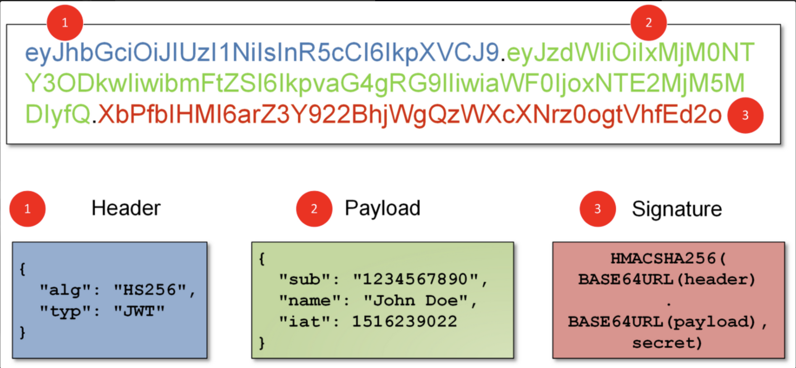 • HTTP 헤더 샘플 (RFC 6750 Bearer 타입) Authorization: Bearer eyJhbGciOiJIUzI1NiIsInR5cCI6IkpXVCJ9.eyJzdWIiOiIxMjM0NTY3ODkwIiwibmFtZSI6IkpvaG4gRG9lIiwiaWF0IjoxNTE2MjM5MDIyfQ.SflKxwRJSMeKKF2QT4fwpMeJf36POk6yJV_adQssw5c
